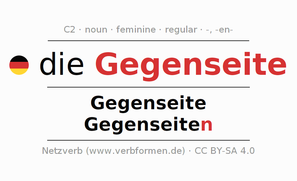 - Singular: die Gegenseite, der Gegenseite, der Gegenseite, die Gegenseite