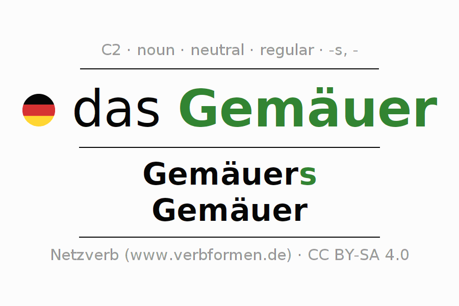 - Plural: die Gemäuer, der Gemäuer, den Gemäuern, die Gemäuer