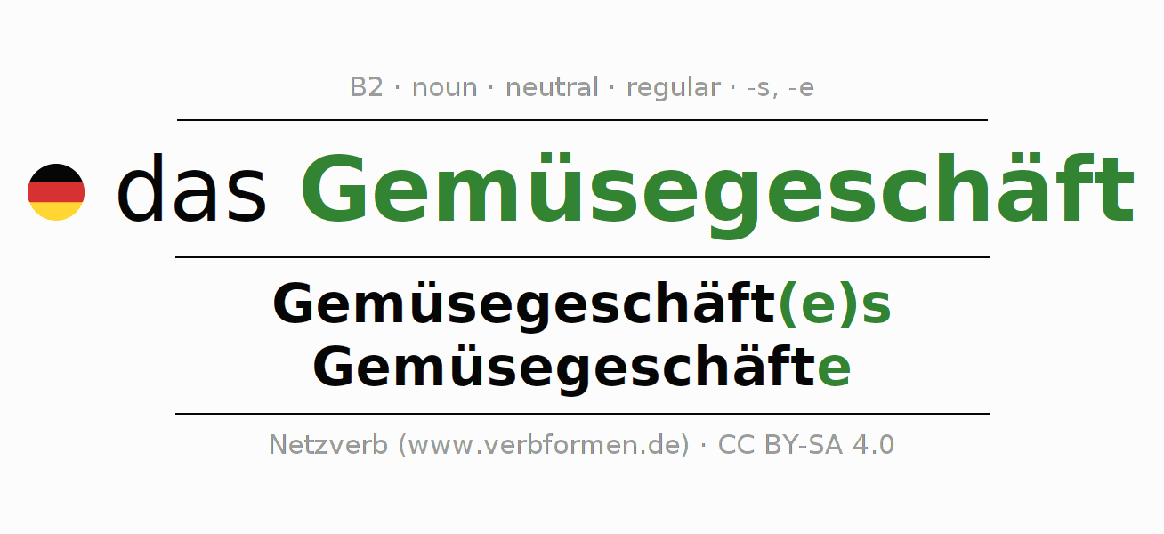 | Nom. | das Gemüsegeschäft | die Gemüsegeschäfte |