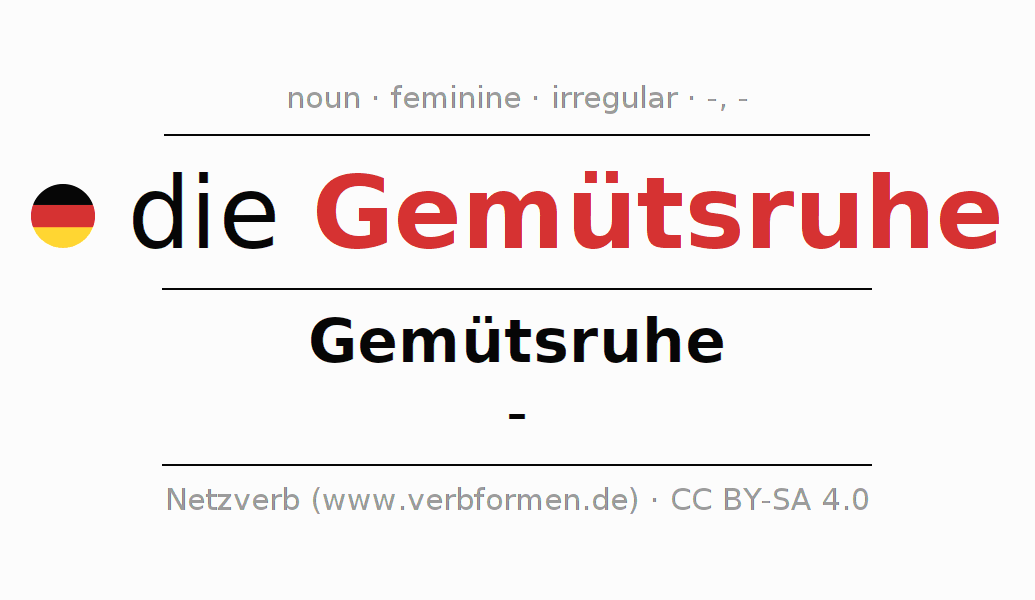 - Singular: die Gemütsruhe, der Gemütsruhe, der Gemütsruhe, die Gemütsruhe