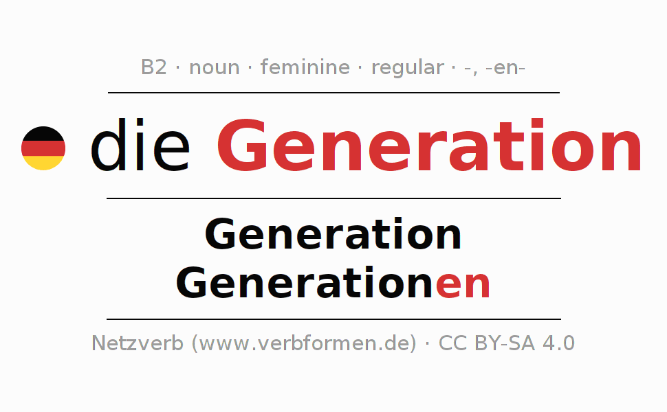 - Plural: die Generationen, der Generationen, den Generationen, die Generationen