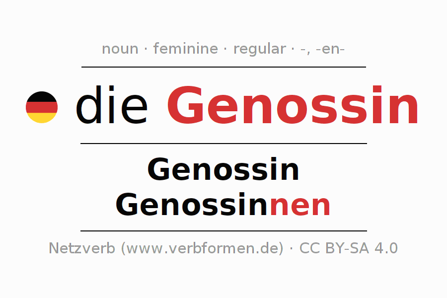 - Singular: die Genossin, der Genossin, der Genossin, die Genossin
