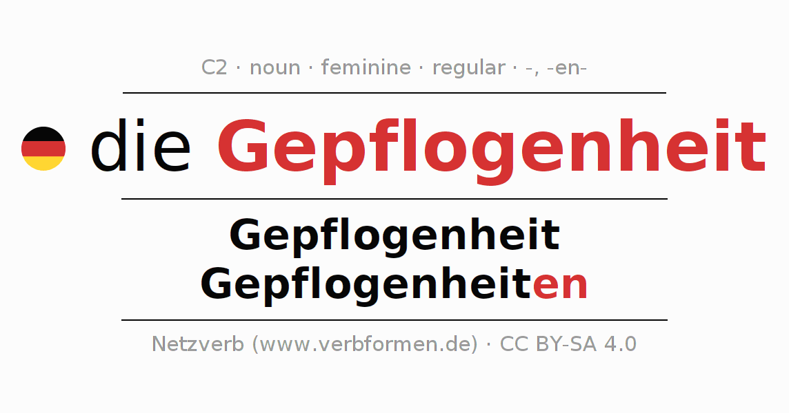 | Nom. | die Gepflogenheit | die Gepflogenheiten |