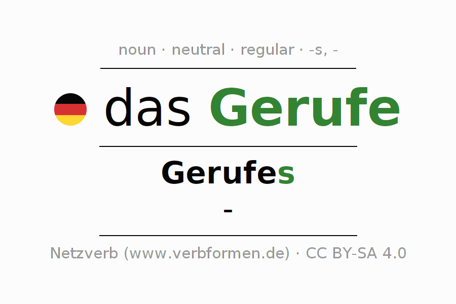 - Singular: das Gerufe, des Gerufes, dem Gerufe, das Gerufe