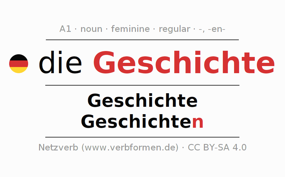 - Plural: die Geschichten, der Geschichten, den Geschichten, die Geschichten