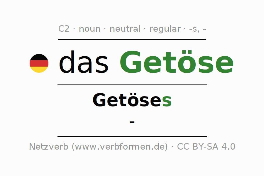 The declension of Getöse as a table with all forms in singular (singular) and plural (plural) and in all four cases nominative (1st case), genitive (2nd case), dative (3rd case) and accusative (4th case). Especially for German learners the correct declension of the word Getöse is crucial.