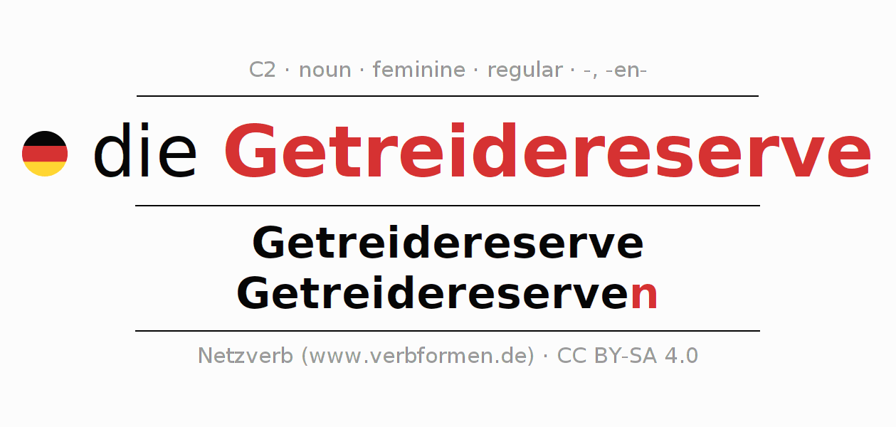 - Singular: die Getreidereserve, der Getreidereserve, der Getreidereserve, die Getreidereserve
