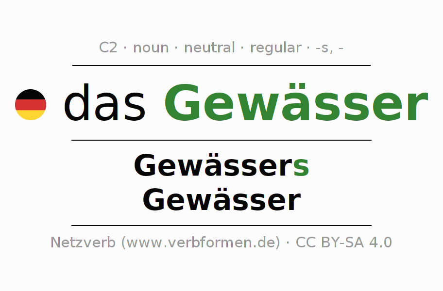 - Plural: die Gewässer, der Gewässer, den Gewässern, die Gewässer