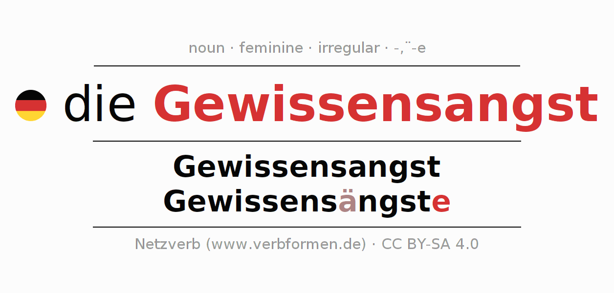 | Nom. | die Gewissensangst | die Gewissensängste |