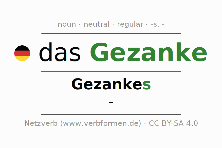 The declension of Gezanke as a table with all forms in singular (singular) and plural (plural) and in all four cases nominative (1st case), genitive (2nd case), dative (3rd case) and accusative (4th case). Especially for German learners the correct declension of the word Gezanke is crucial.