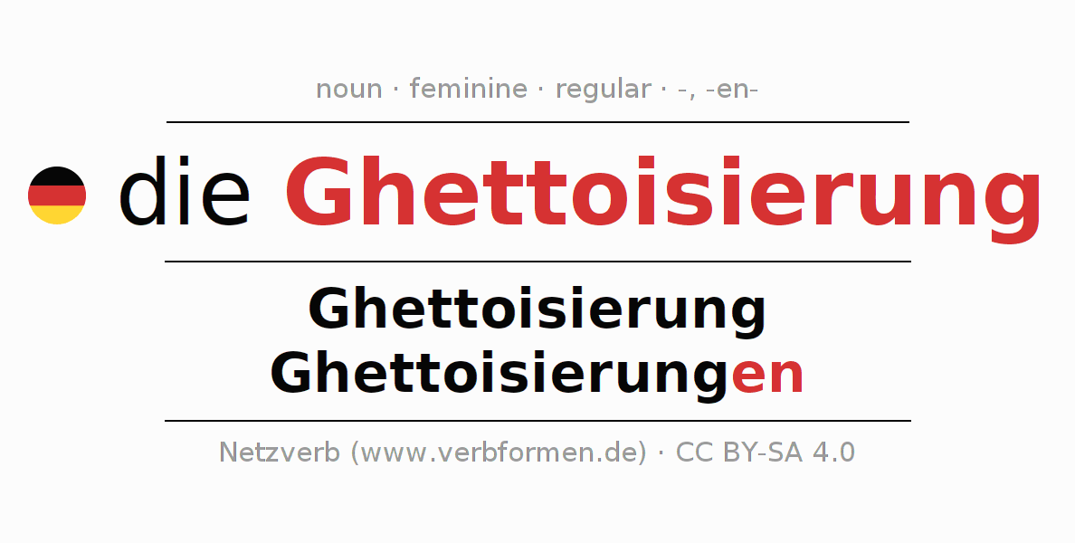 | Nom. | die Ghettoisierung | die Ghettoisierungen |