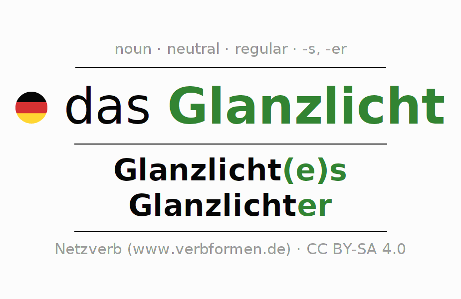 | Nom. | das Glanzlicht | die Glanzlichter |