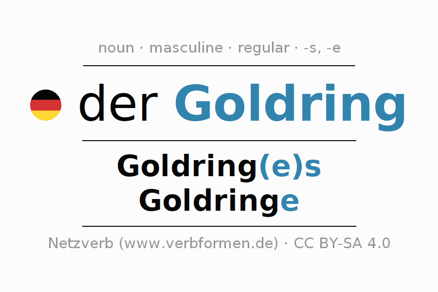 - Singular: der Goldring, des Goldring(e)s, dem Goldring(e), den Goldring