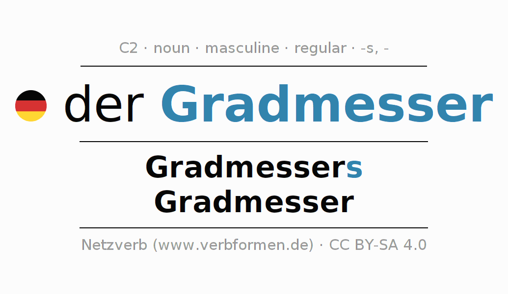 - Singular: der Gradmesser, des Gradmessers, dem Gradmesser, den Gradmesser