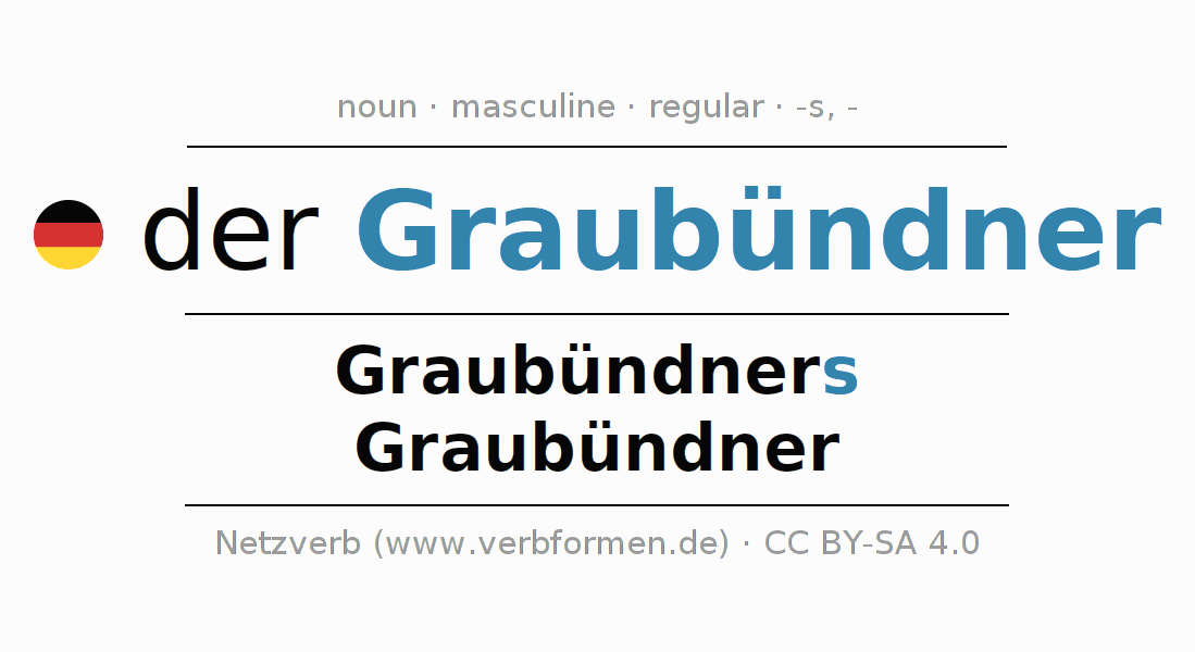 - Plural: die Graubündner, der Graubündner, den Graubündnern, die Graubündner