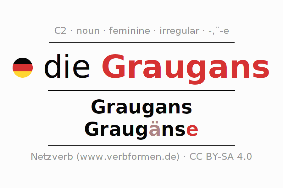 - Singular: die Graugans, der Graugans, der Graugans, die Graugans