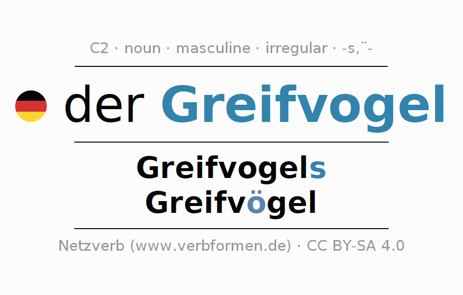 - Singular: der Greifvogel, des Greifvogels, dem Greifvogel, den Greifvogel
