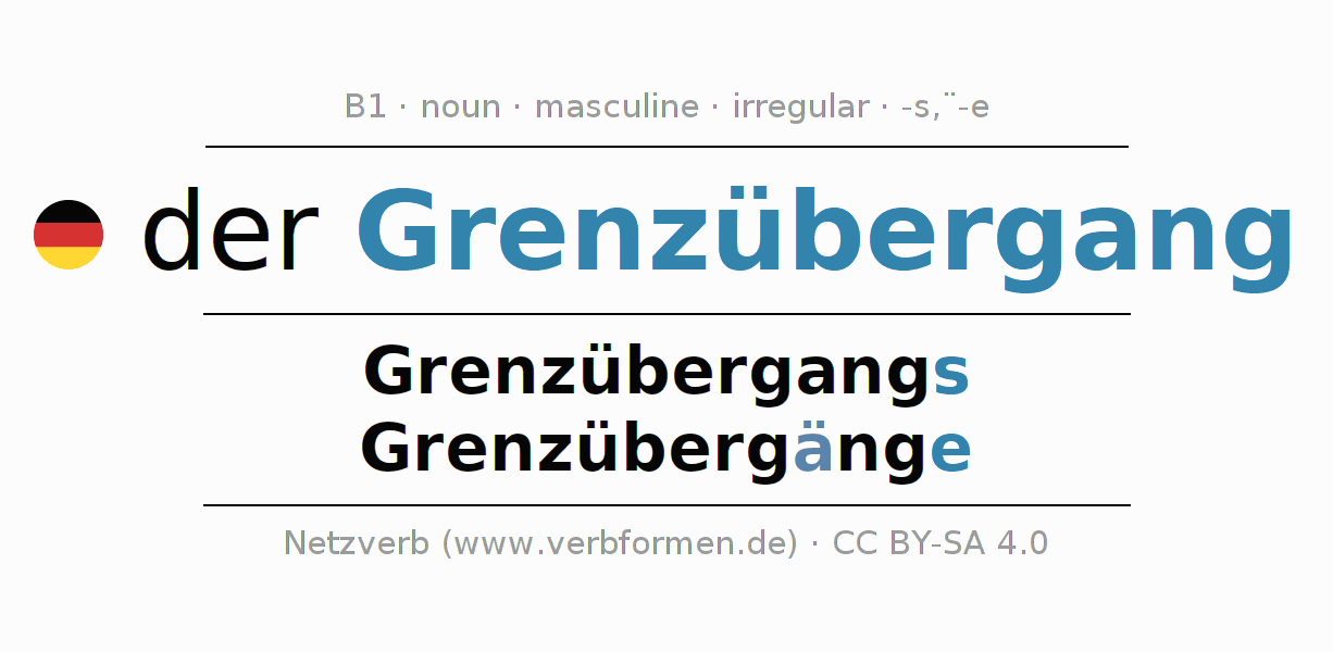 - Plural: die Grenzübergänge, der Grenzübergänge, den Grenzübergängen, die Grenzübergänge