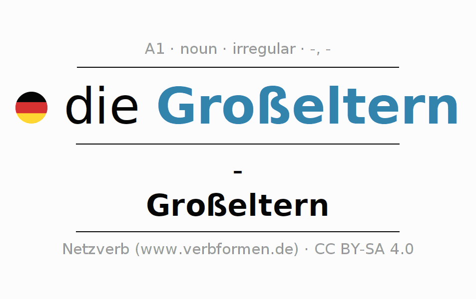 - Plural: die Großeltern, der Großeltern, den Großeltern, die Großeltern