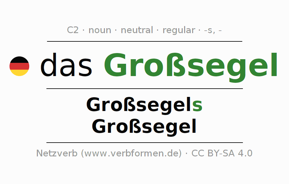 - Singular: das Großsegel, des Großsegels, dem Großsegel, das Großsegel