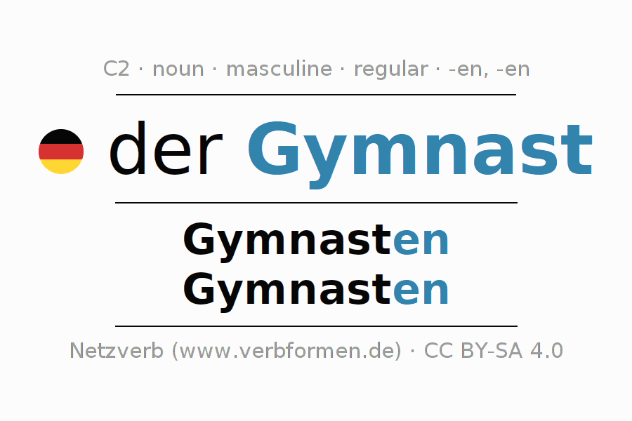 - Plural: die Gymnasten, der Gymnasten, den Gymnasten, die Gymnasten