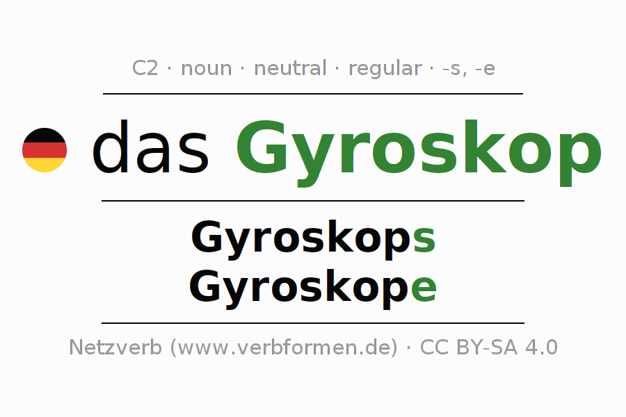 - Singular: das Gyroskop, des Gyroskops, dem Gyroskop, das Gyroskop
