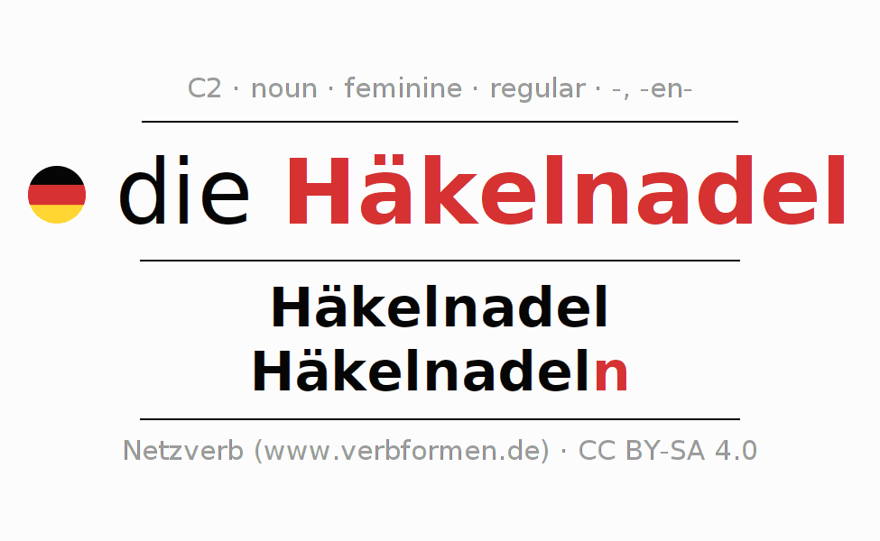 - Singular: die Häkelnadel, der Häkelnadel, der Häkelnadel, die Häkelnadel