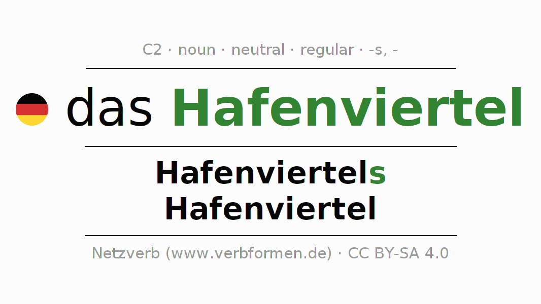 - Plural: die Hafenviertel, der Hafenviertel, den Hafenvierteln, die Hafenviertel