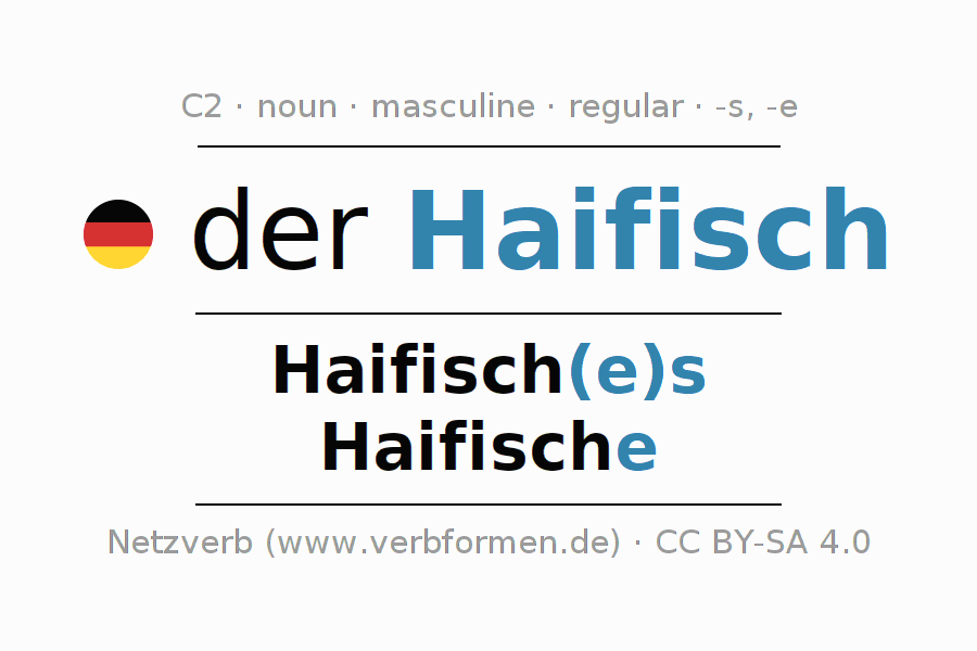 - Plural: die Haifische, der Haifische, den Haifischen, die Haifische