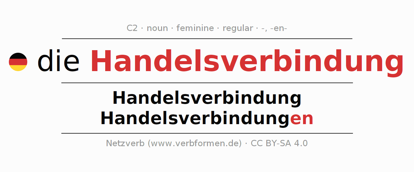 - Singular: die Handelsverbindung, der Handelsverbindung, der Handelsverbindung, die Handelsverbindung