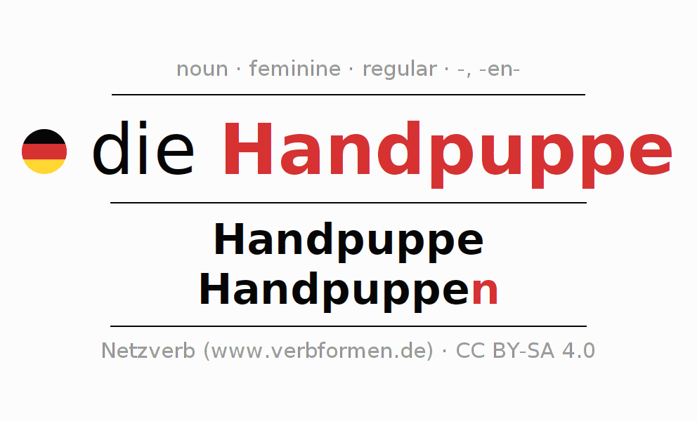 - Singular: die Handpuppe, der Handpuppe, der Handpuppe, die Handpuppe