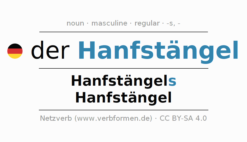 - Singular: der Hanfstängel, des Hanfstängels, dem Hanfstängel, den Hanfstängel