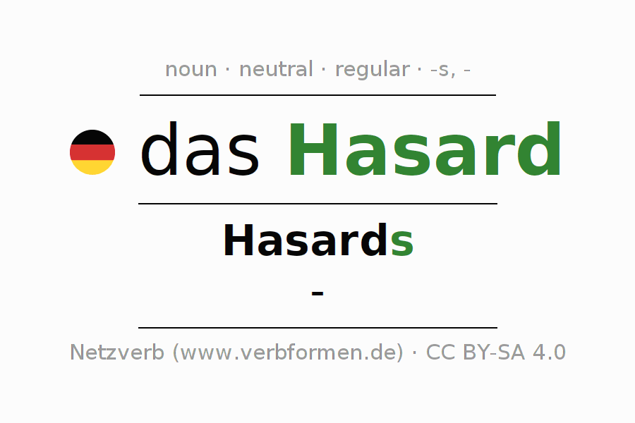 - Singular: das Hasard, des Hasards, dem Hasard, das Hasard