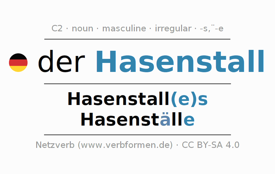 | Dat. | dem Hasenstall(e) | den Hasenställen |
