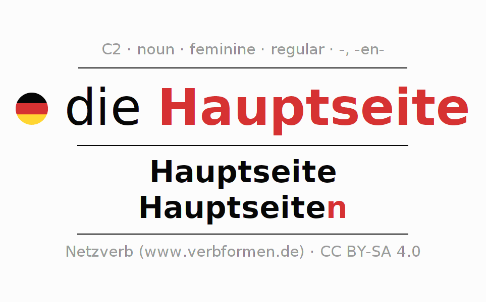 - Singular: die Hauptseite, der Hauptseite, der Hauptseite, die Hauptseite