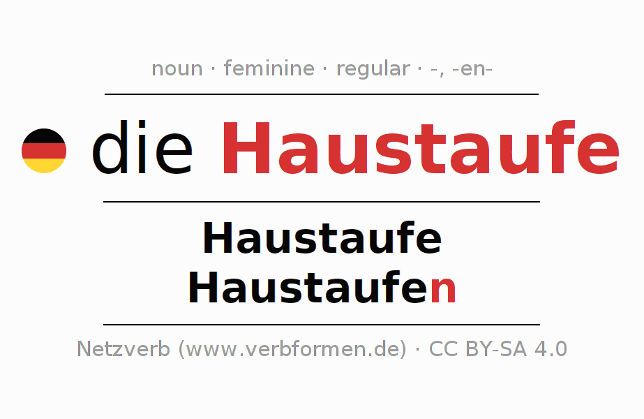 - Singular: die Haustaufe, der Haustaufe, der Haustaufe, die Haustaufe