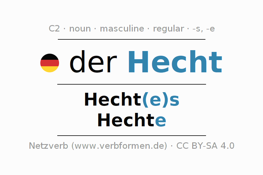 - Singular: der Hecht, des Hecht(e)s, dem Hecht(e), den Hecht