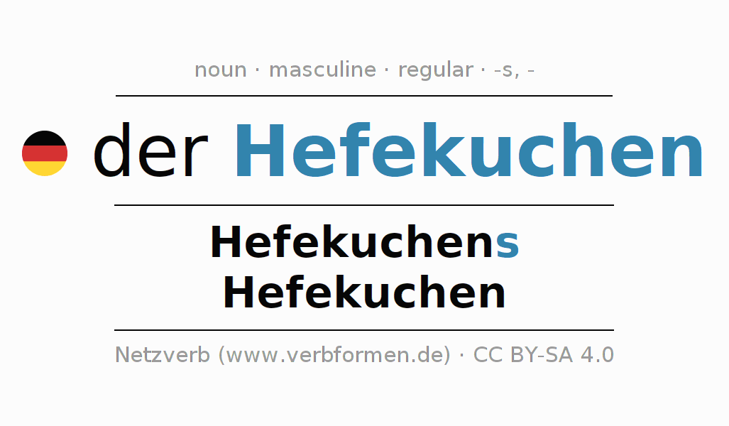 - Singular: der Hefekuchen, des Hefekuchens, dem Hefekuchen, den Hefekuchen