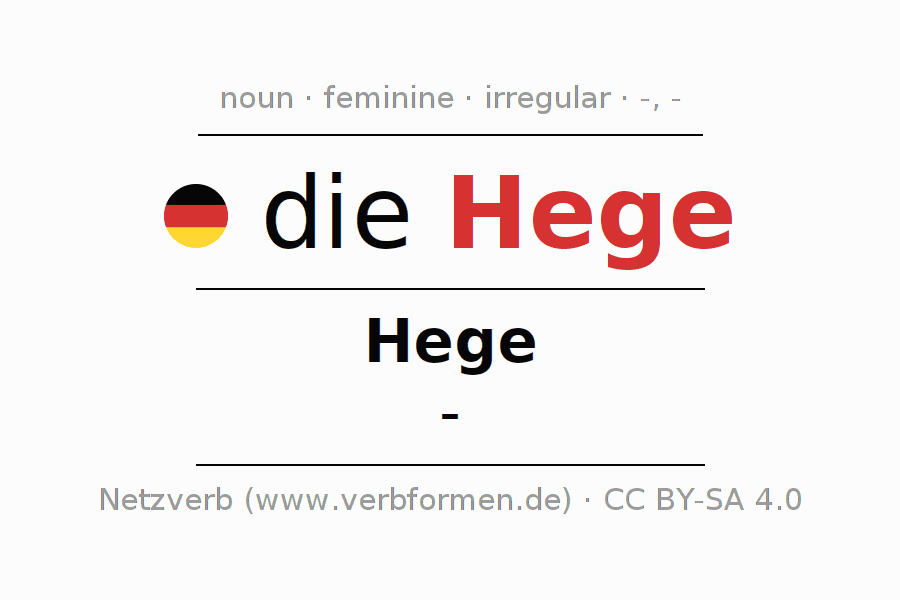 - Singular: die Hege, der Hege, der Hege, die Hege