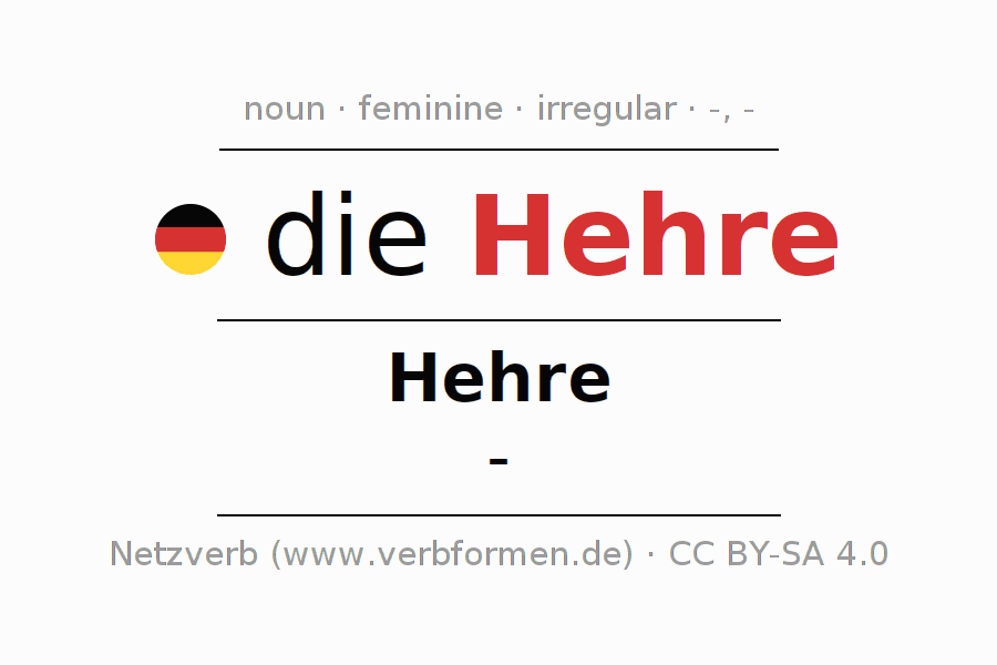 The declension of Hehre as a table with all forms in singular (singular) and plural (plural) and in all four cases nominative (1st case), genitive (2nd case), dative (3rd case) and accusative (4th case). Especially for German learners the correct declension of the word Hehre is crucial.