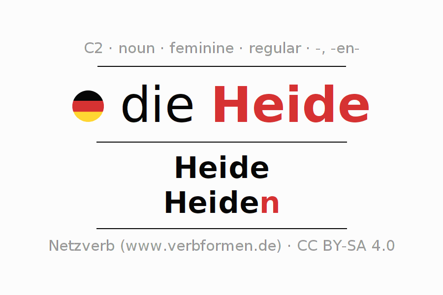 - Singular: die Heide, der Heide, der Heide, die Heide