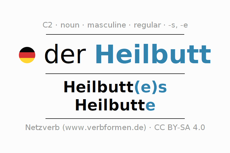 - Plural: die Heilbutte, der Heilbutte, den Heilbutten, die Heilbutte