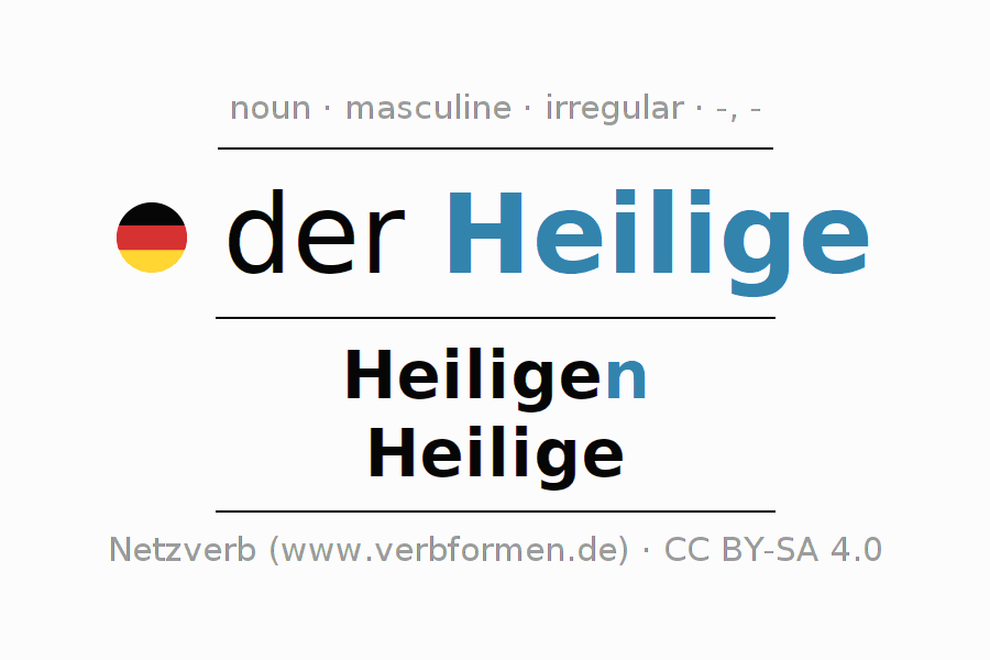 - Plural: die Heiligen, der Heiligen, den Heiligen, die Heiligen