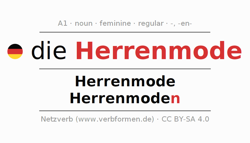 - Singular: die Herrenmode, der Herrenmode, der Herrenmode, die Herrenmode