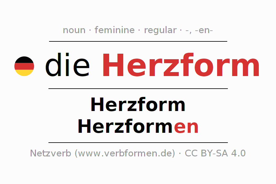 - Plural: die Herzformen, der Herzformen, den Herzformen, die Herzformen