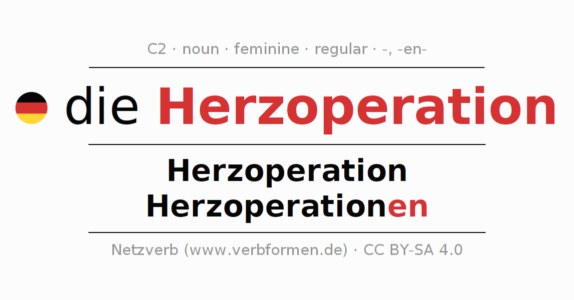 - Plural: die Herzoperationen, der Herzoperationen, den Herzoperationen, die Herzoperationen