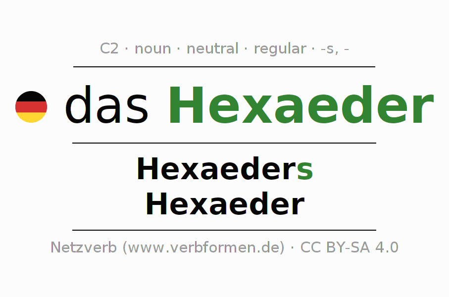 - Singular: das Hexaeder, des Hexaeders, dem Hexaeder, das Hexaeder