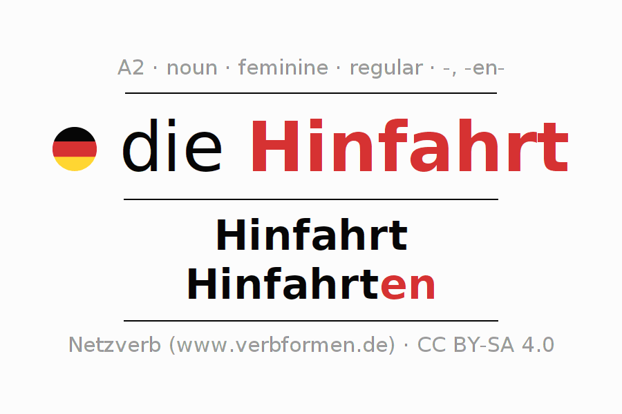 - Singular: die Hinfahrt, der Hinfahrt, der Hinfahrt, die Hinfahrt