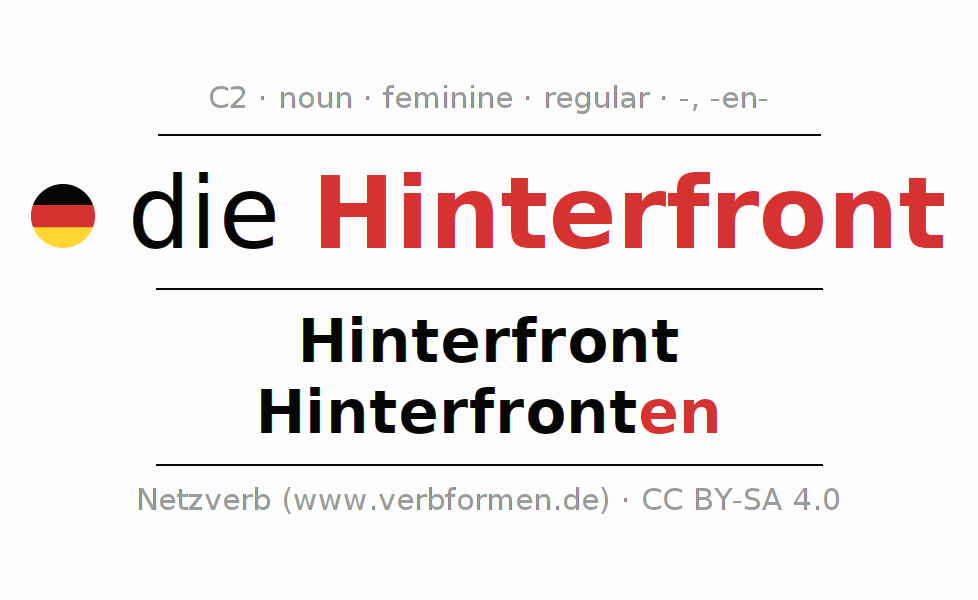 - Singular: die Hinterfront, der Hinterfront, der Hinterfront, die Hinterfront