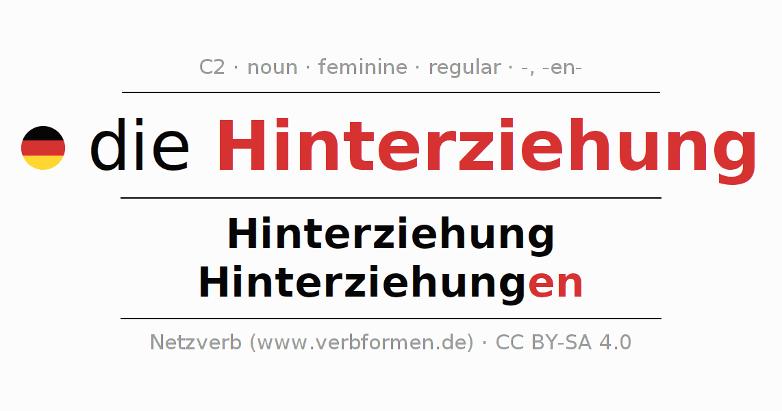 | Nom. | die Hinterziehung | die Hinterziehungen |